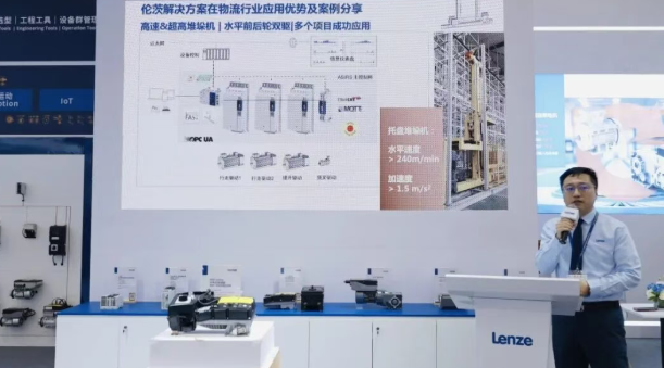 Changxing Gao, Pengarah Jualan Industri Logistik China di Lenze, memperkenalkan di tempat kejadian bahawa penyelesaian ini telah berjaya digunakan dalam beberapa senario kritikal. Contohnya, di Pusat Operasi Suzhou Anta, kren penumpuk yang dilengkapi dengan sistem Lenze mencapai kelajuan mendatar 5.4 m/s. Dalam projek talian penghantar untuk pengeluar bateri litium terkemuka, penyelesaian motor pintar menjimatkan lebih 80% kabel dan meningkatkan kecekapan pemasangan dengan ketara.
